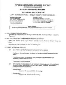 Minutes for 10-8-25 Regular Board meeting