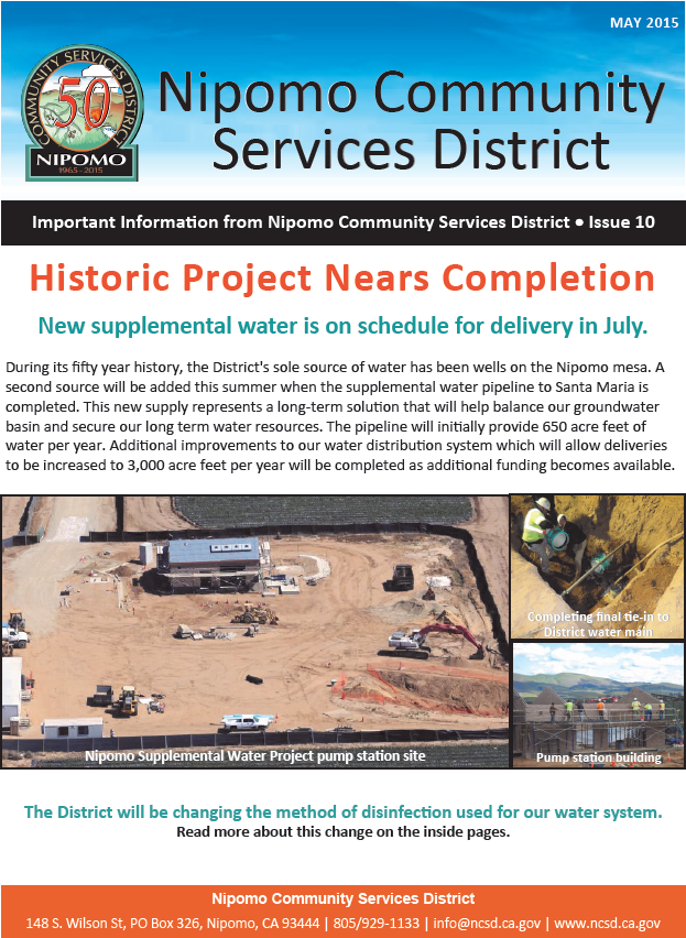 Court Appointed Technical Group Releases Spring 2015 Index; Area Groundwater in Severe Shortage Condition; Nipomo CSD Calls Special Meeting